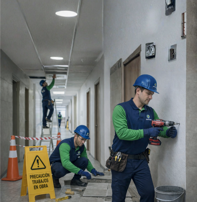 Trabajos locativos puntuales que apoyan la conservación, adecuación y mejora de espacios institucionales, comerciales o residenciales.